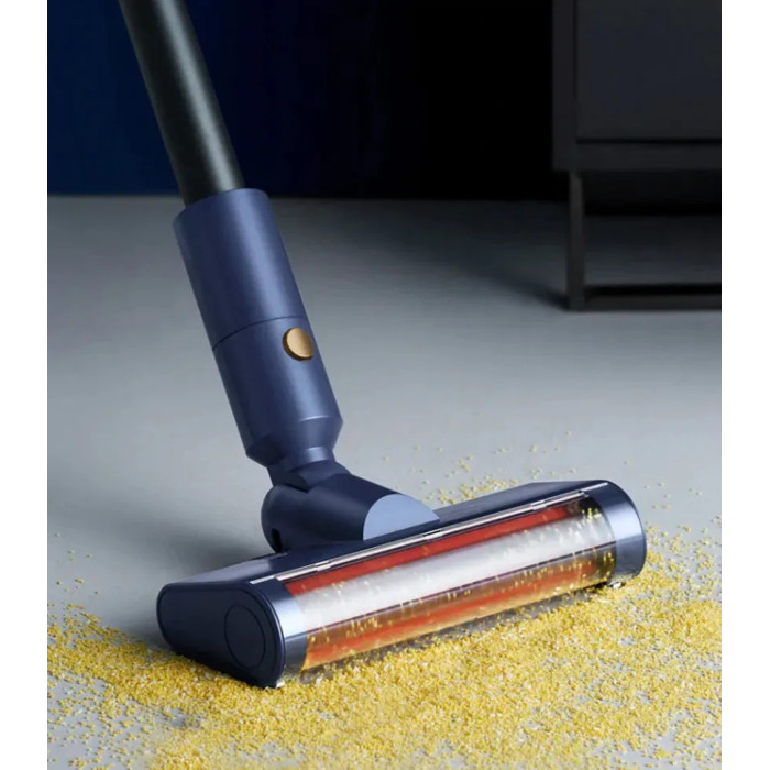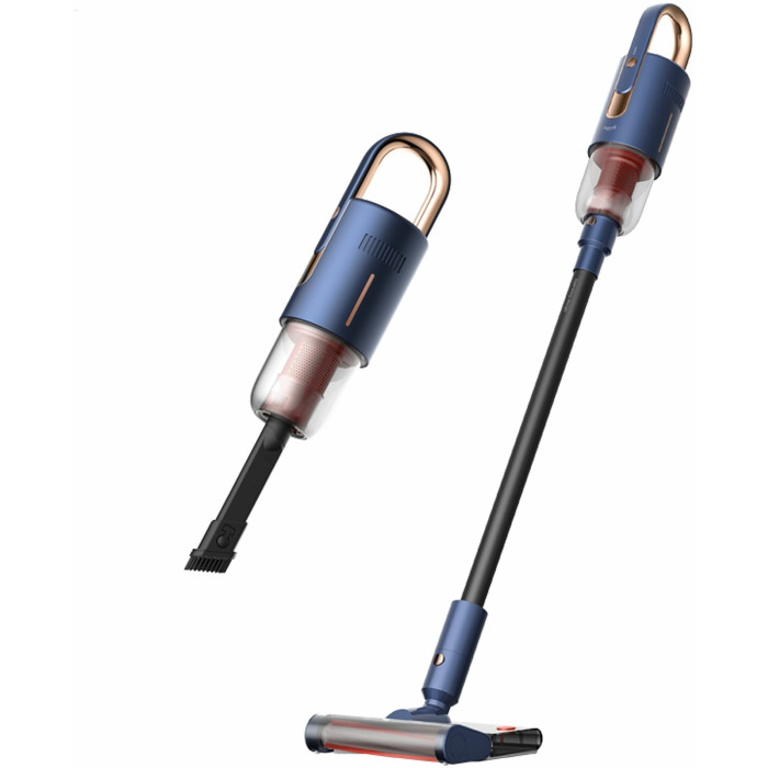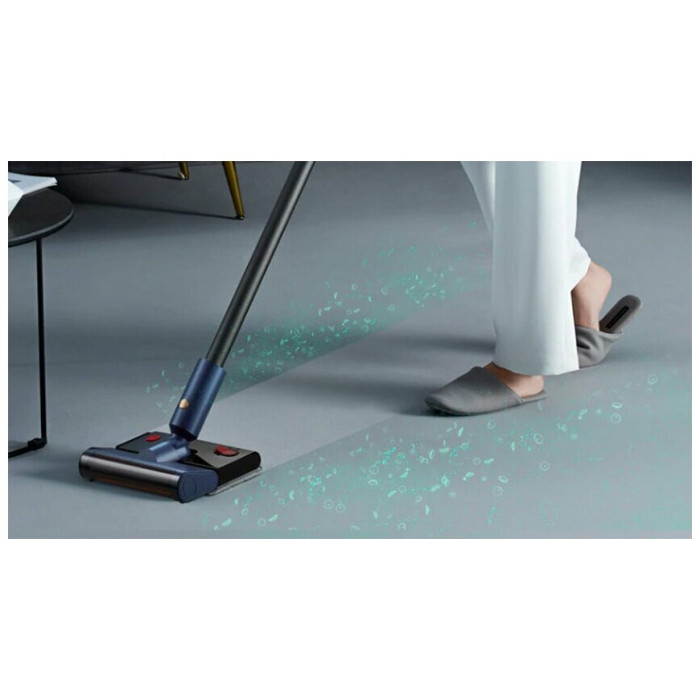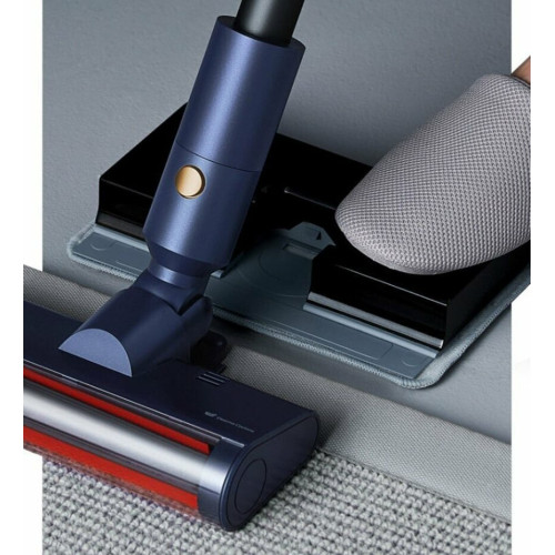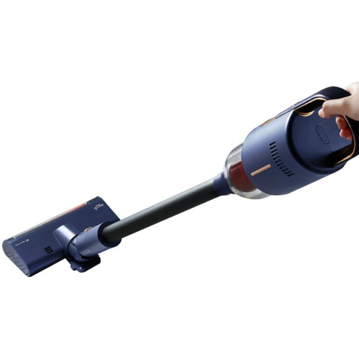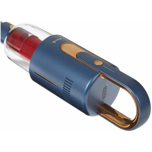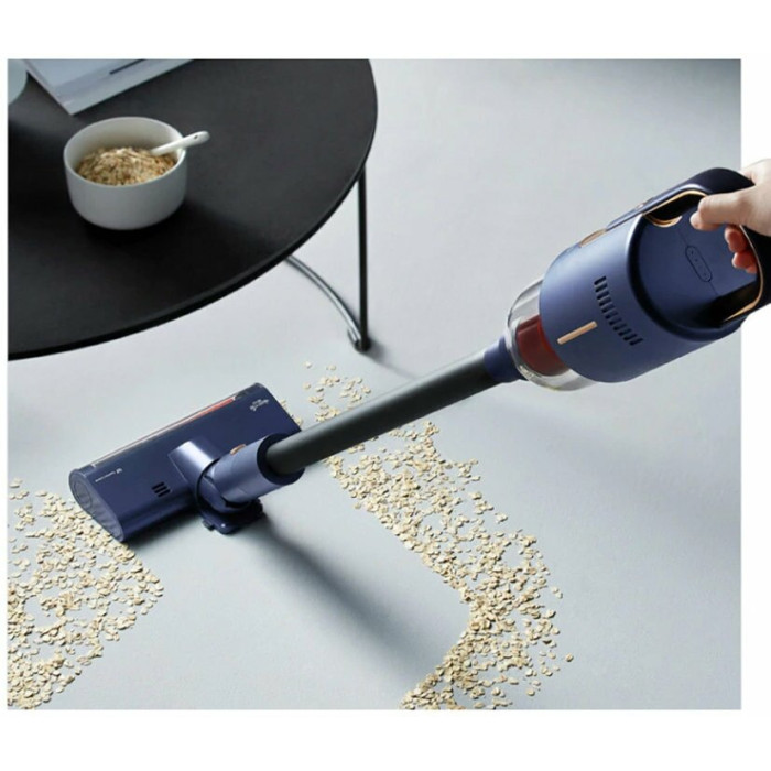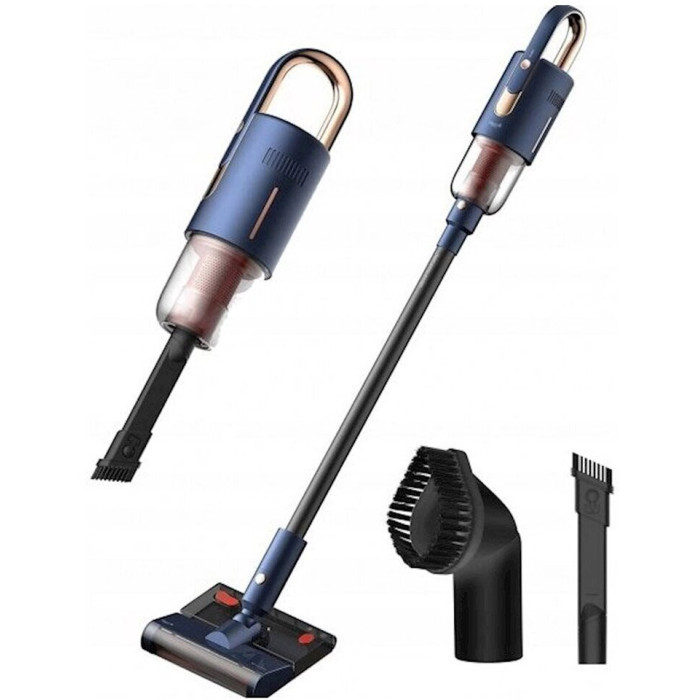 Маневренный вертикальный пылесос Deerma VC20 Pro сине-золотистого цвета поможет легко поддерживать чистоту в доме или квартире. Причем с его помощью можно выполнять как сухую, так и влажную уборку, для чего в комплекте имеется специальная насадка. Возможность трансформировать пылесос в ручной (для уборки мебели) делает его многофункциональным. Пылесборник в виде контейнера расположен в верхней части устройства. Его объем составляет 600 мл. Бесщеточный электродвигатель, которым оснащен пылесос, отличается высокой мощностью.