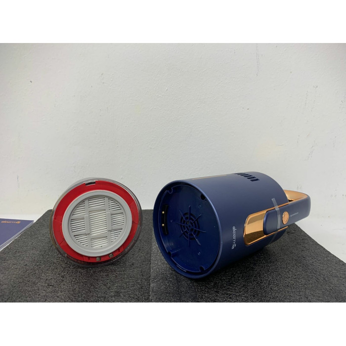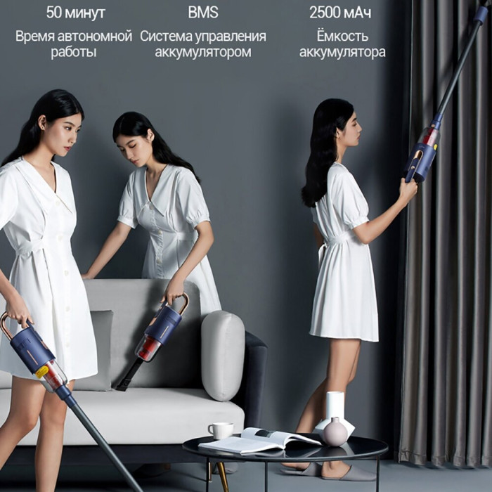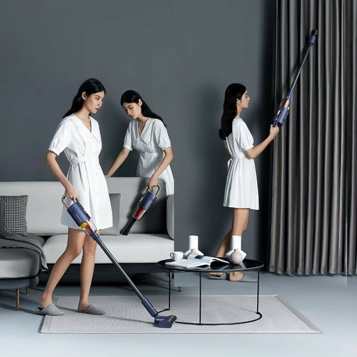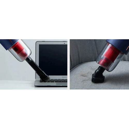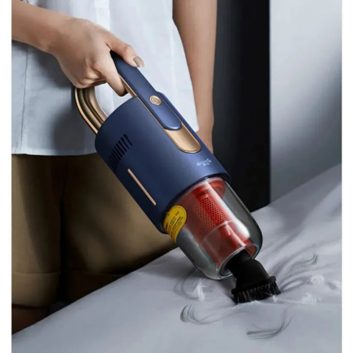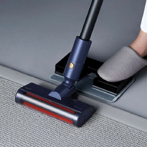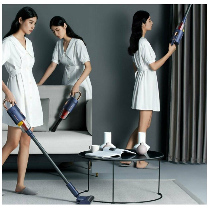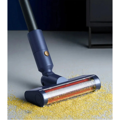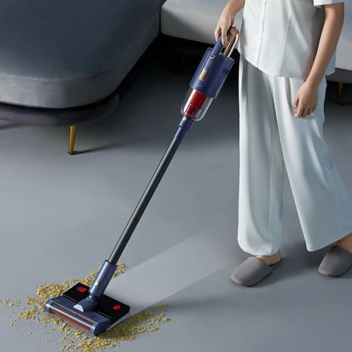Маневренный вертикальный пылесос Deerma VC20 Pro сине-золотистого цвета поможет легко поддерживать чистоту в доме или квартире. Причем с его помощью можно выполнять как сухую, так и влажную уборку, для чего в комплекте имеется специальная насадка. Возможность трансформировать пылесос в ручной (для уборки мебели) делает его многофункциональным. Пылесборник в виде контейнера расположен в верхней части устройства. Его объем составляет 600 мл. Бесщеточный электродвигатель, которым оснащен пылесос, отличается высокой мощностью.