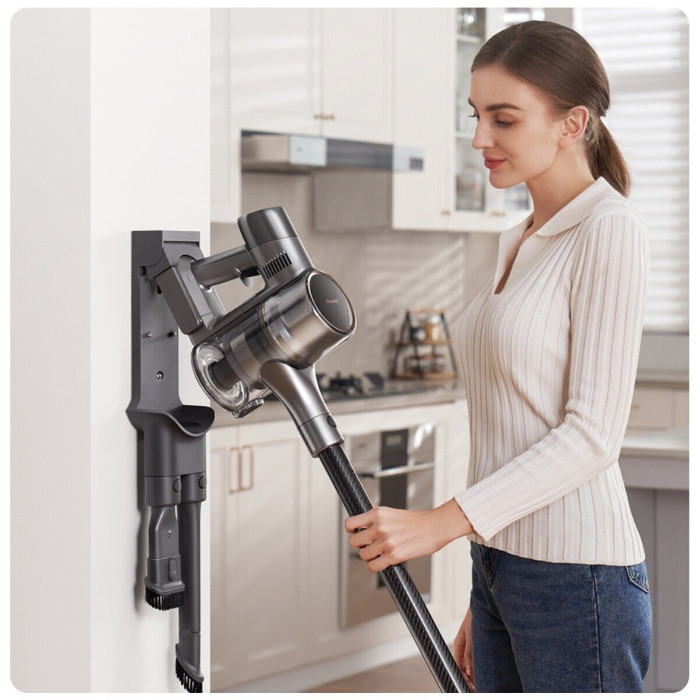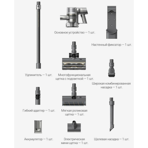 Основные характеристики - Тип: вертикальный, автомобильный - Уборка: сухая - Потребляемая мощность: 570 Вт - Мощность всасывания: 190 аВт - Пылесборник: контейнер - Объем пылесборника: 0.6 л - Уровень шума: 68 дБ Управление - Тип управления: электронный - Регулятор мощности: на рукоятке - Дисплей: символьный, цифровой Фильтрация воздуха - Фильтр тонкой очистки: есть - Модель фильтра тонкой очистки: HEPA - Система очистки фильтра: ручная Насадки - Количество насадок: 5 - Тип насадки: электрощетка - Насадка для пола и ковров: в комплекте - Насадка для мягкой мебели: в комплекте - Насадка 2 в 1: в комплекте - Насадка-щетка: в комплекте Режимы работы - Количество режимов работы: 3 - Режимы работы: низкая мощность, средняя мощность, высокая мощность - Автоматическая уборка: да Ориентация в пространстве - Датчик загрязнения: да Индикация - Индикация включения: да - Индикация режима работы: да - Индикатор уровня зарядки аккумулятора: да - Индикация зарядки: да Дополнительные характеристики - Подсветка зоны уборки: да - Парковка: вертикальная - Крепление на стену: да - Установка на зарядное устройство: ручная - Труба всасывания: цельная Комплектация - Кронштейн для крепления на стену: в комплекте - Количество аккумуляторов в комплекте: 1 - Дополнительная комплектация: гибкий адаптер - Инструкция: да Корпус - Цвет: серый - Материал корпуса: пластик Питание - Источник питания: аккумулятор - Тип аккумулятора: Li-Ion - Емкость аккумулятора: 2900 мАч - Время работы от аккумулятора: 90 мин - Время зарядки аккумулятора: 4 ч Размеры и вес - Высота: 77.5 см - Ширина: 15.5 см - Глубина: 26.8 см - Вес: 1.67 кг