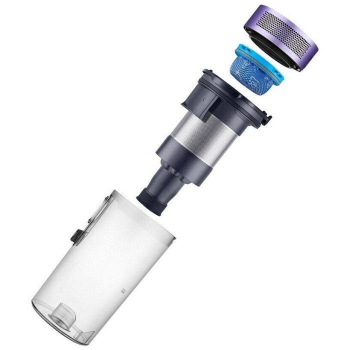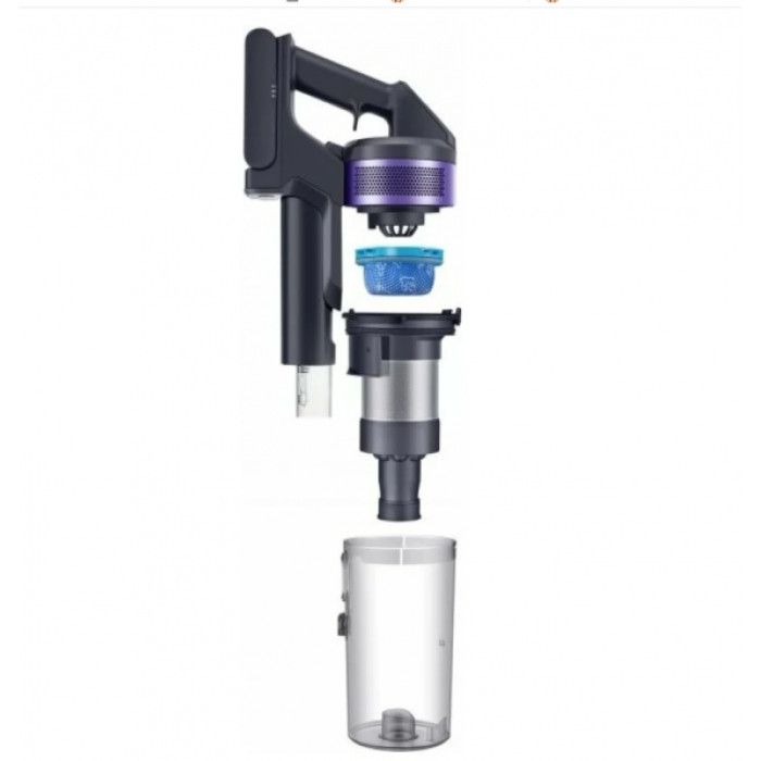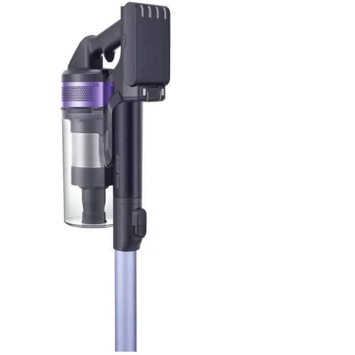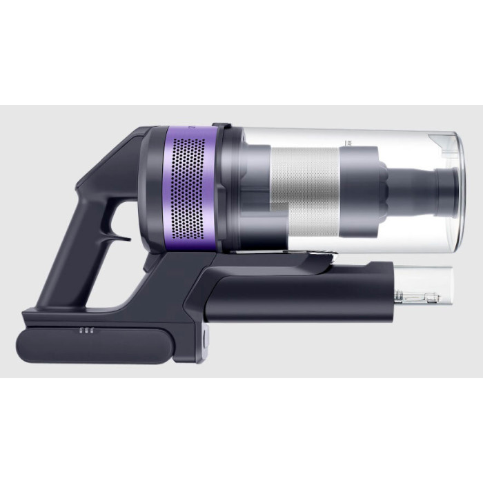 Ручной пылесос Samsung Jet VS15A6031R4/EV фиолетовый/серый, мощность 410Вт, уборка: сухая, объем пылесборника 0.8л, мощность всасывания 150Вт, регулировка мощности на ручке