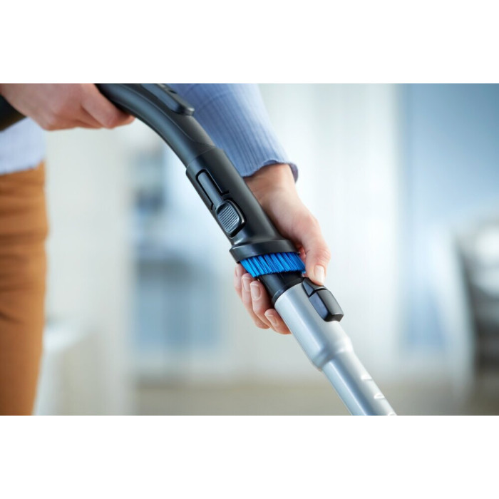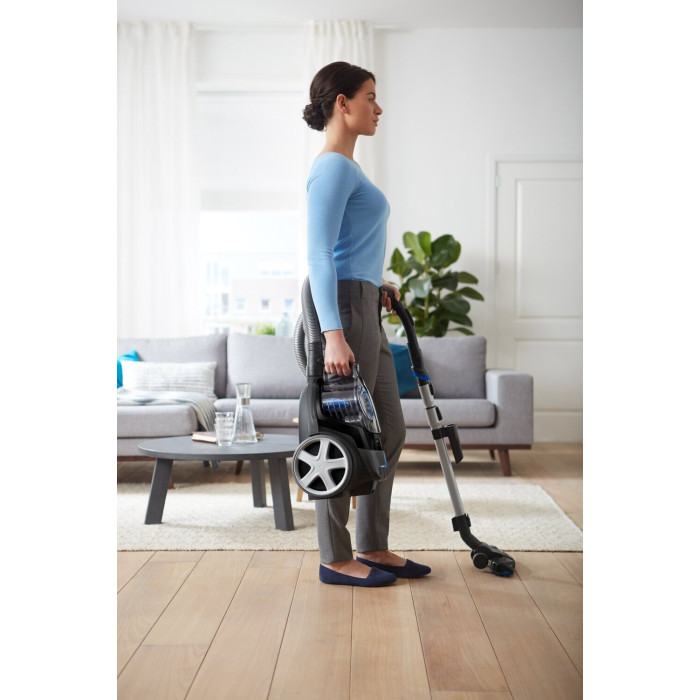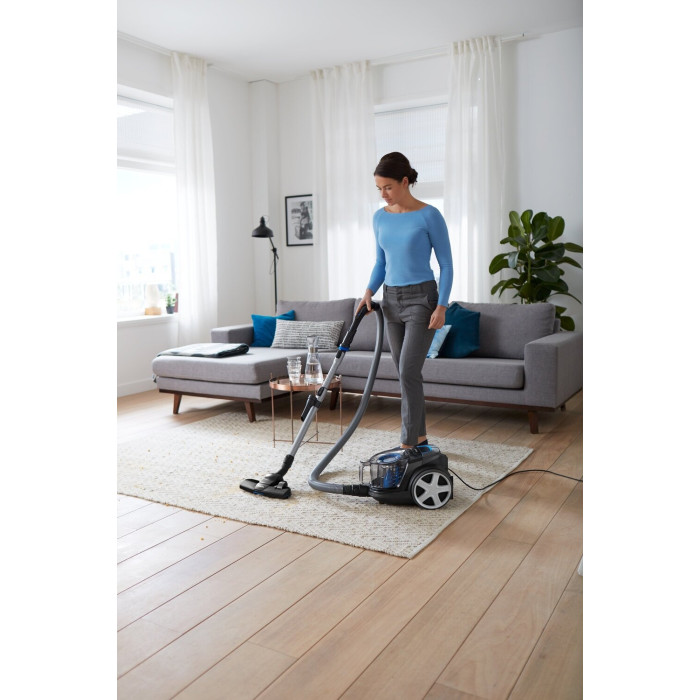 Тип: традиционный пылесос; Тип уборки: сухая; Тип пылесборника: контейнер; Объем пылесборника: 1.5 л; Потребляемая мощность: 650 Вт; Насадки в комплекте: пол/ковёр TriActive, паркетная, для мебели, щелевая; Тип питания: от сети; Труба всасывания: телескопическая;