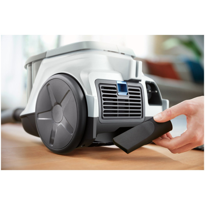 вертикальная парковка, индикатор заполнения пылесборника, место для хранения насадок, Автоматическая смотка шнура, Горизонтальная парковка, Регулировка мощности