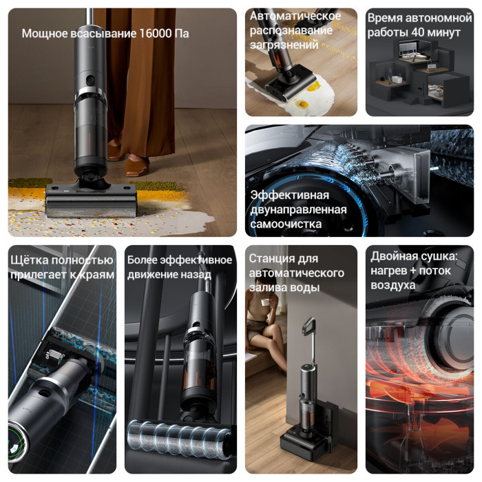 зарядное устройство, насадка для ламината и паркета, насадка для сбора жидкости, универсальная насадка для влажной уборки
