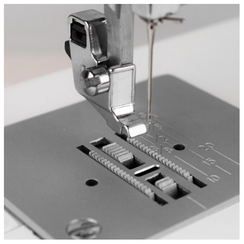 • 13 операций • Вертикальный качающийся челнок • Полуавтоматическая петля в 4 приема • Автоматический нитевдеватель • Максимальная длина стежка - 5 мм • Максимальная ширина зигзага - 5 мм • Регулировка натяжения верхней нити • Автоматическая намотка нити на шпульку • Максимальный подъем лапки - 8 мм • Съемная рукавная платформа для обработки узких и круговых изделий • Яркое светодиодное (LED) освещение рабочей поверхности • Мощность мотора - 70 Вт • Вес машины - 6,3 кг