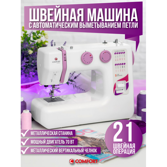 Мягкий чехол, шпульки (3шт.), набор игл, пластина для потайной подгибки, лапка для вшивания молнии, лапка для петли автомат, масленка, отверка бол. и мал.