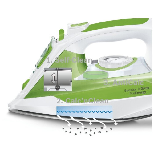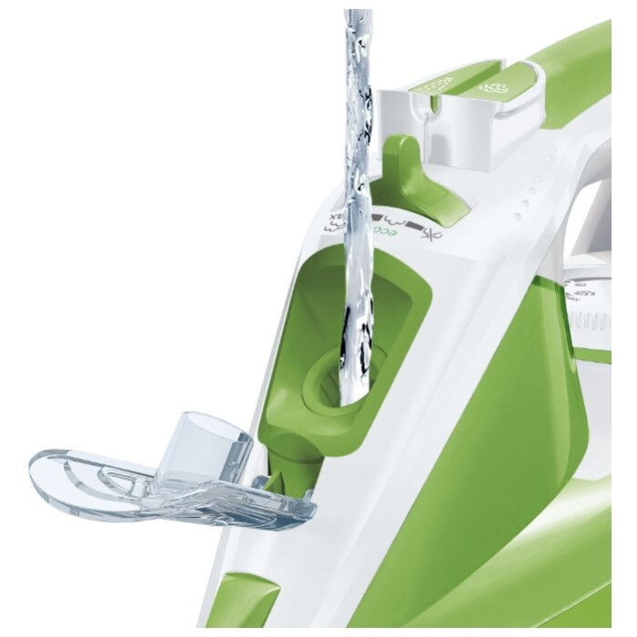 заостренный носик для разглаживания между пуговицами и швами; световой индикатор работы