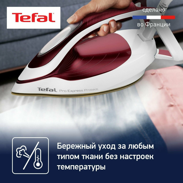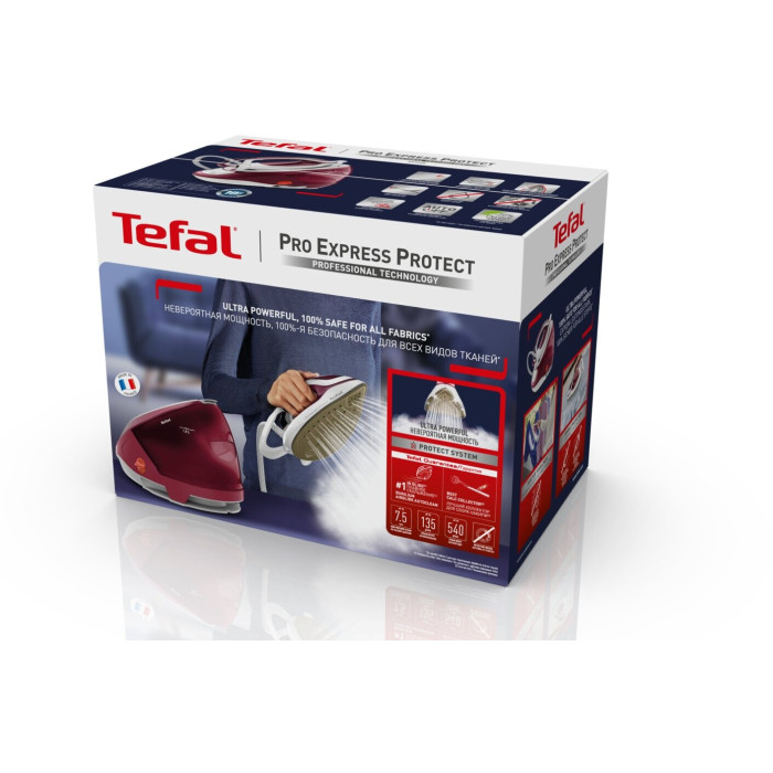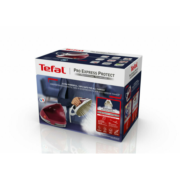 Впечатляющая эффективность Парогенератор создает давление 7,5 бар, обеспечивая максимально эффективный, быстрый и профессиональный уход за вашими вещами. Мощный паровой удар Интенсивный паровой удар 540 г/мин обеспечивает легкое разглаживание самых стойких складок и плотных тканей. Безупречные результаты Мощный постоянный пар подается со скоростью до 135 г/мин и обеспечивает эффективное разглаживание складок при каждом использовании. 100% безопасность Технология No-Setting создает оптимальную комбинацию температуры нагрева и мощности пара в зависимости от типа ткани для качественного и бережного ухода за вещами без риска прожечь их. Освежает и дезинфицирует вещи Высокая температура нагрева подошвы и мощный пар уничтожают до 99% микробов и бактерий, которые могут появиться в тканях, и гарантируют гигиеническую чистоту вашей одежды. Съемный коллектор для накипи Собирает в 10 раз больше* накипи, гарантируя неизменную мощность пара и производительность устройства надолго *По сравнению с аналогичными технологиями других производителей Система Protect System Система Protect System превращает капли воды, которые образуются в подошве, в пар, предотвращая их попадание на ткани. Подошва Durilium Airglide Autoclean Подошва Durilium AirGlide – на 33% более гладкая и долговечная и гарантирует лучшее скольжение от Tefal и максимальное распределение пара. Каталитическое покрытие Autoclean сохраняет подошву идеально чистой даже спустя время. Съемный резервуар для воды Резервуар для воды объемом 1,8 л легко снимается, и его можно наполнять во время работы устройства. Система блокировки Продуманная система блокировки утюжка на базе для комфортной транспортировки и безопасного хранения. Характеристики Регулировка подачи пара Есть Производитель Tefal Давление пара 7,5 бар Мощность 2600 Вт Материал подошвы Durilium Airglide Autoclean Паровой удар 540 г/мин Подача пара 135 г/мин Постоянная подача пара Есть Противокапельная система Да Бойлер Да Коллектор от накипи Да Фиксатор утюга Есть Резервуар для воды 1,8 л. Съемный резервуар для воды Да Долив воды во время работы Есть Широкое отверстие для залива воды Есть Автоотключение Да Индикация Есть Эко-функция Есть Функция автоматической настройки температуры подошвы и силы пара в зависимости от выбранного типа ткани Есть Эргономичная ручка Есть Система Easycord Есть Защитная крышка нет Специальный отсек для хранения шнура подачи пара и электрошнура Есть Цвет Темно-красный Страна производителя Франция Гарантия 2 года Вес 5.50 кг Размеры (ШxГxВ), 44.70 x 28.40 x 34.40 см