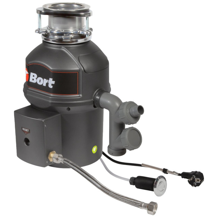 плавный пуск; возможность подключения беспроводной кнопки; производительность: 5,2 кг/мин; длина шнура питания: 1,2 м; комплектация: монтажный узел, сливная труба, проталкиватель, пневмовыключатель