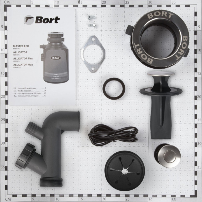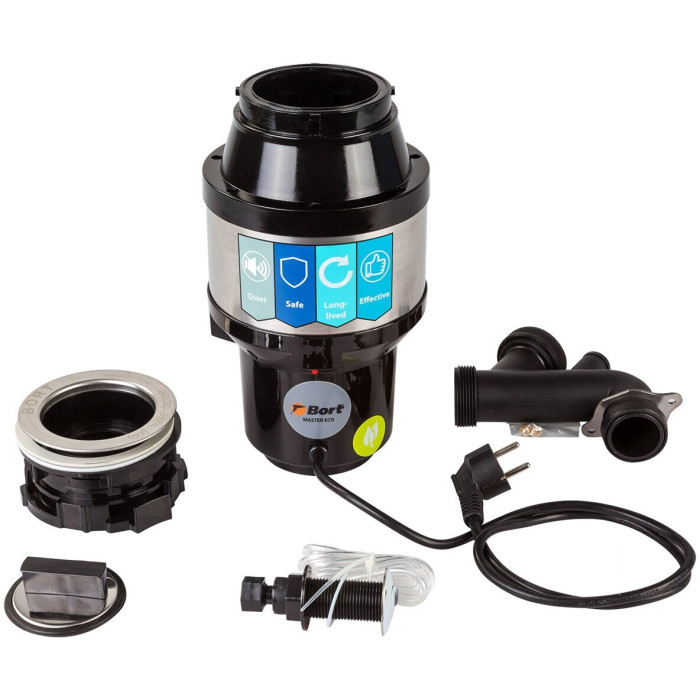 комплектация: пневмовыключатель, фильтрующая сетка с резиновой пробкой, монтажный узел, сливная труба; длина шнура питания, м: 0,9; автовыключения нет; возможность подключения беспроводной кнопки