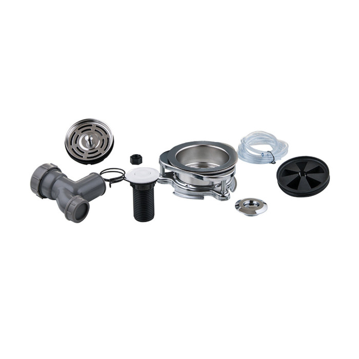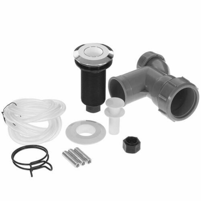комплектация: пневмовыключатель (выключатель, шланг, 2 сменные цветовые панели); фильтрующая сетка с резиновой пробкой; монтажный узел; сливная труба с пружинным хомутом