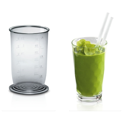 работает без брызг благодаря специальной конструкциипогружной части; аксессуары можно мыть в посудомоечноймашине (погружную часть, металлический венчик, чашуизмельчителя, за исключением моторного блока ипереходника)