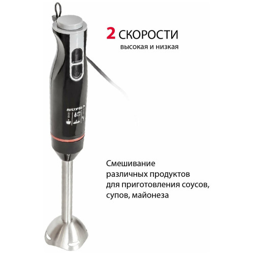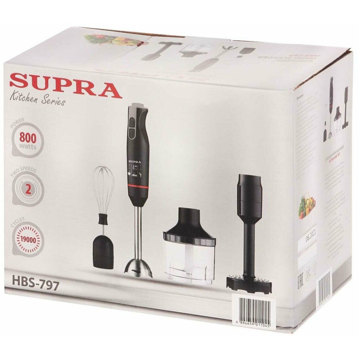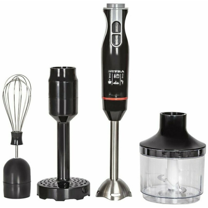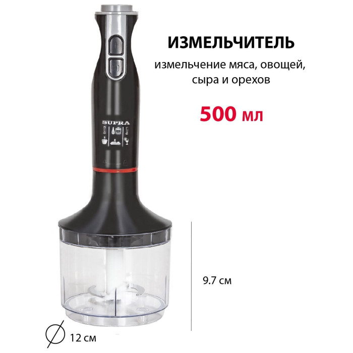 тип: погружной, максимальная мощность: 800 Вт, материал погружной части: металл, насадки: венчик для взбивания, для приготовления пюре, измельчитель, насадка для приготовления пюре, насадка-блендер, дополнительные функции: защита от перегрева, емкость измельчителя: 0.50 л, особенности конструкции: Кнопка для быстрого снятия насадок, вес: 1.27 кг