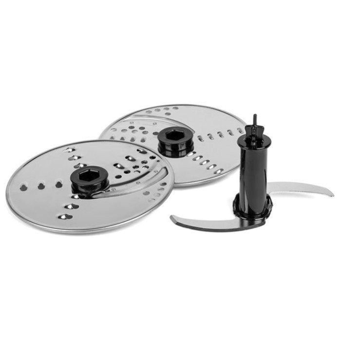 2 насадки-шинковки: средняя и крупная; 2 насадки для терки: средняя и крупная