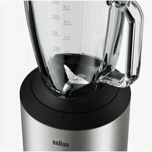 блендер Braun оснащен погружной частью из нержавеющей стали, позволяющей работать с продуктами любой температуры.; импульсный дает возможность быстро измельчать и перемешивать ингредиенты; ножи из нержавеющей стали справляются с нарезкой любых продуктов и гарантируют износоустойчивость лезвий