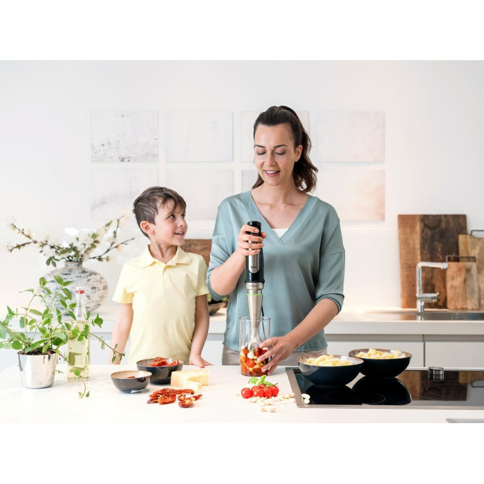 Автоматическое замешивание теста, Импульсный режим, Прорезиненная ручка, Режим Турбо, Режим ТурбоПлавное изменение скорости, движущиеся ножи, плавная регулировка скорости, Импульсный режим, Режим Турбо