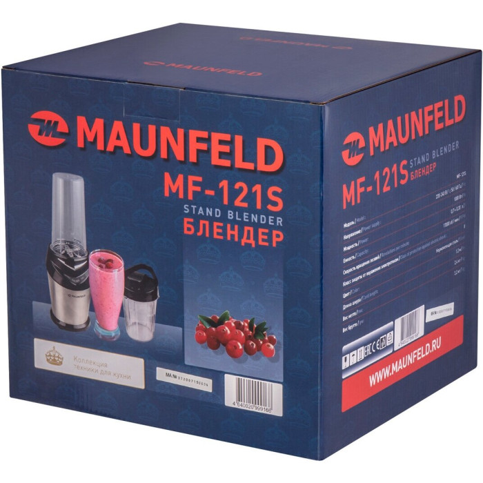 мерный стакан, Блендер MAUNFELD MF-121S, инструкция - 1 штука, Блендер, бутылка 700 мл, кружка 350 мл, крышка с отверстием для питья ,гарантийный талон, инструкция, В комплекте: два стакана 0,7л и 0,35л и инструкция на русском языке