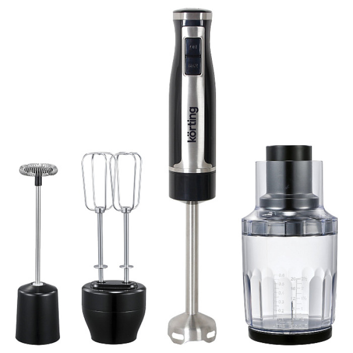1. Блок электродвигателя - 1 шт. 2. Насадка-блендер - 1 шт. 3. Венчики-2 шт. 4. Переходник для насадки-двойного венчика - 1 шт. 5. Насадка- вспениватель - 1 шт. 6. Переходник для насадки-вспенивателя - 1 шт. 7. Чаша измельчителя - 1 шт. 8. Крышка чаши измельчителя - 1 шт. 9. Съемный блок лезвий измельчителя - 1 шт. 10. Толкатель - 1 шт. 11. Прозрачная крышка - 1 шт. 12. Спиралайзер для нарезки соломкой - 1 шт. 13. Спиралайзер для нарезки средними слайсами - 1 шт. 14. Спиралайзер для нарезки широкими лентами - 1 шт. 15. Книга рецептов - 1 шт. 16. Руководство по эксплуатации с гарантийным талоном - I шт.