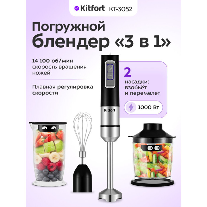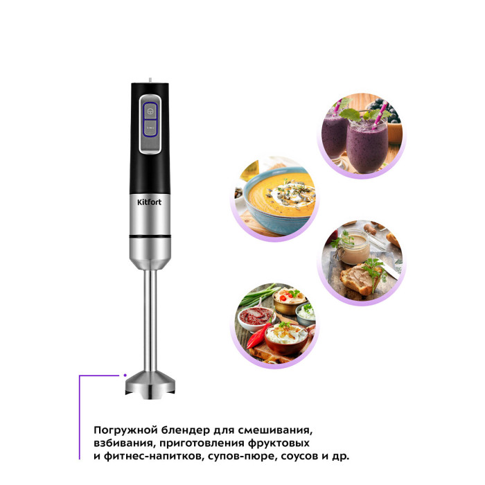 максимальная скорость вращения 13500 об/мин, лезвия из нержавеющей стали, емкость мерного стакана 0.7 л, резиновая подкладка под чашу измельчителя