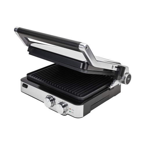 антипригарное покрытие, контактный гриль, поддон для сбора жира, регулировка высоты верхней панели, съемные пластины