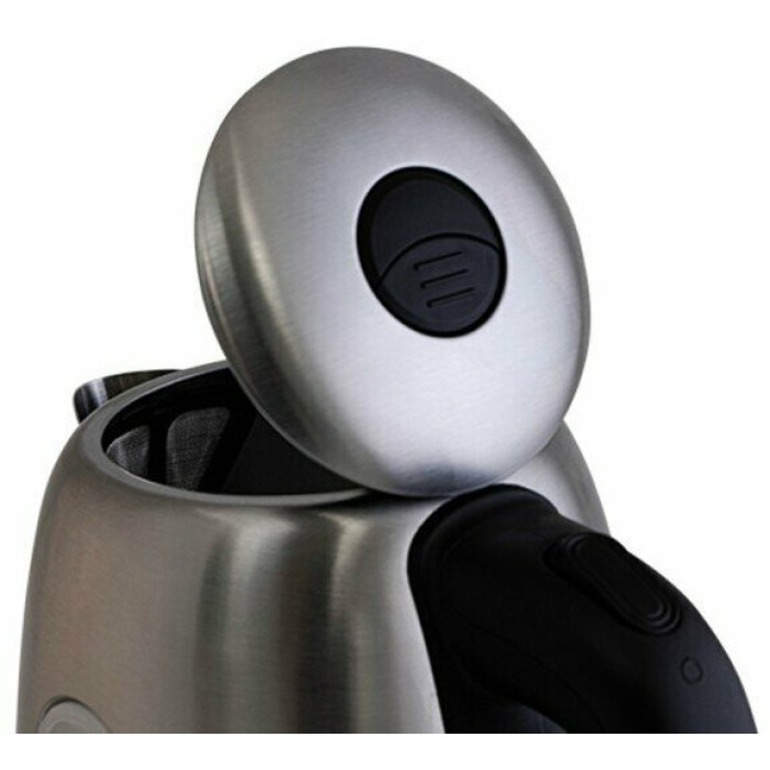 Материал корпуса - нержавеющая сталь; Мощность, Вт - 2200; Объем л. - 1,7; Подсветка - есть; Тип нагревательного элемента - скрытый; Указатель уровня воды - есть; Цвет - черный/сталь;