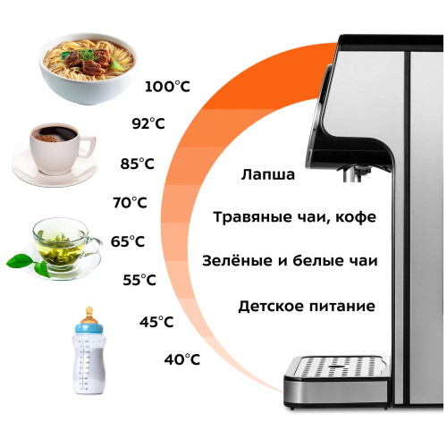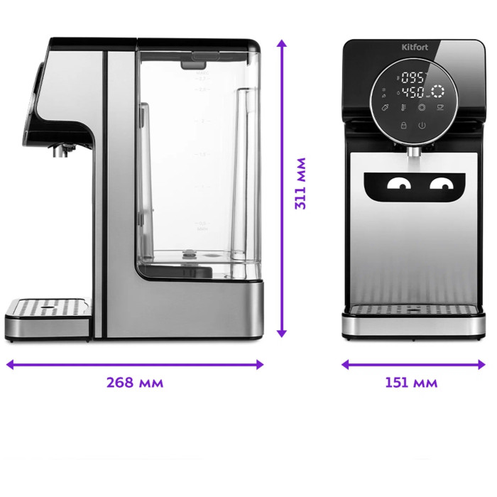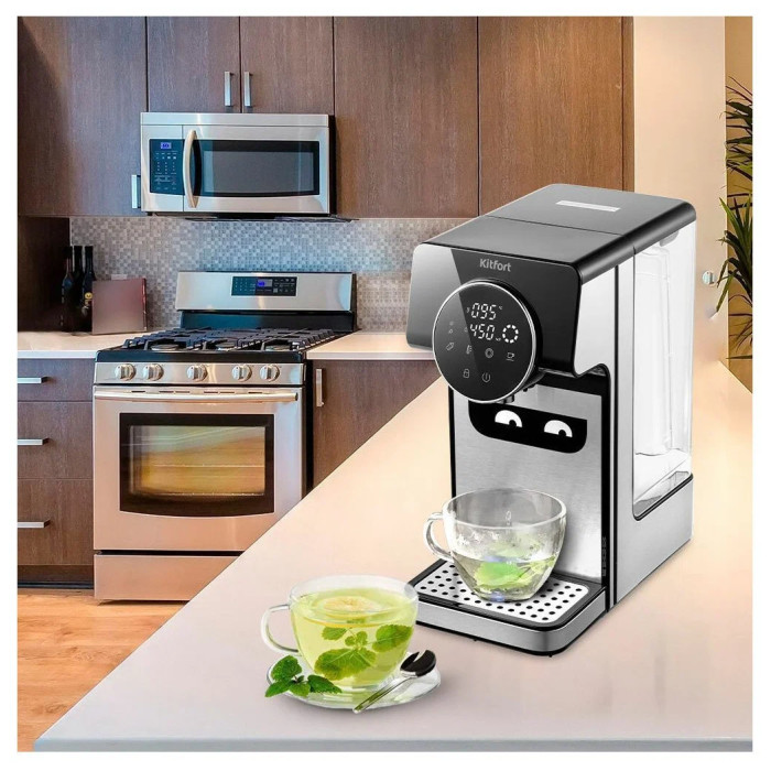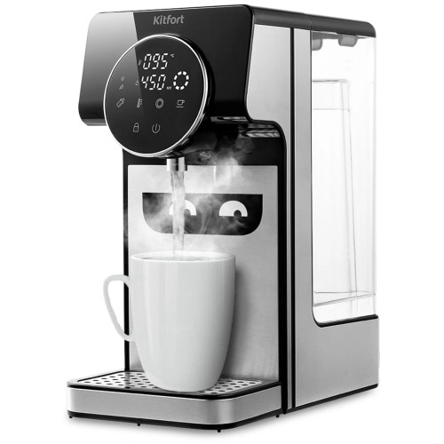 Термопот KT-2510 служит для моментальной подачи воды заданной температуры без предварительного подогрева и ожидания. В отличие от чайников, термопот не нагревает лишний объём воды, экономя электроэнергию. Нагрев до температуры кипения занимает 5 секунд. У термопота 3 режима работы: обычный, «Детское питание», «Чай/кофе». Он оснащён функцией выбора t° и может не только вскипятить воду, но и нагреть её до 40, 45, 55, 65, 70, 85, 92 и 100 °С. Есть возможность выбрать порцию воды объёмом: от 60 до 400 мл. Необходимо приготовить детскую смесь, заварить кашу? Или, возможно, вы чайный гурман? 8 температурных режимов помогут вам в заваривании различных сортов чая, кофе и при приготовлении детского питания. Блокировка экрана не позволит получить ожог при случайном включении подачи воды или испортить поверхность стола кипятком, а также защитит от случайных нажатий на кнопки детьми. Термопот отлично подойдёт для маленьких квартир и студий с компактными кухнями. Благодаря небольшим размерам и минималистичному дизайну отлично впишется в любой интерьер. Все материалы, контактирующие с водой, абсолютно безопасны и экологичны. Вместимость съёмного резервуара 2.7 л, такого объёма хватит на 9 кружек чая ёмкостью 300 мл. Также у термопота есть полезная функция - автоматическая очистка от накипи. Это процесс очищения бойлера от накипи и отложений.