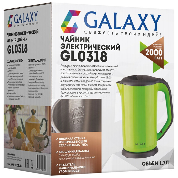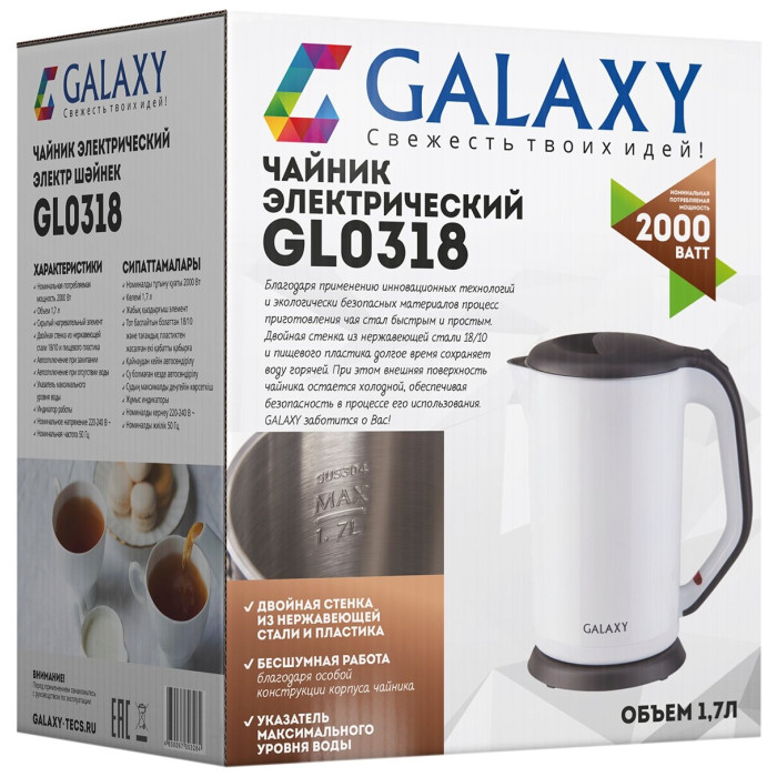 Чайник электрический GALAXY GL0318 - это сочетание элегантности, функциональности и безопасности.