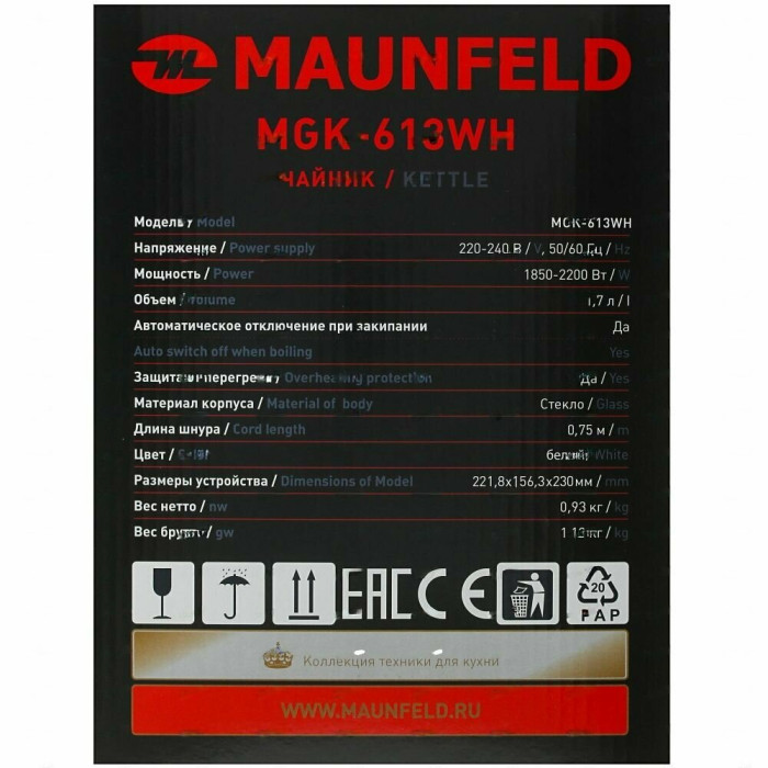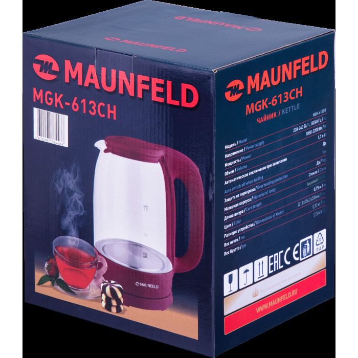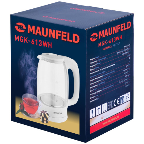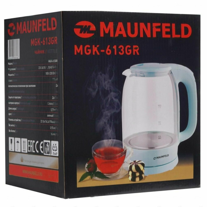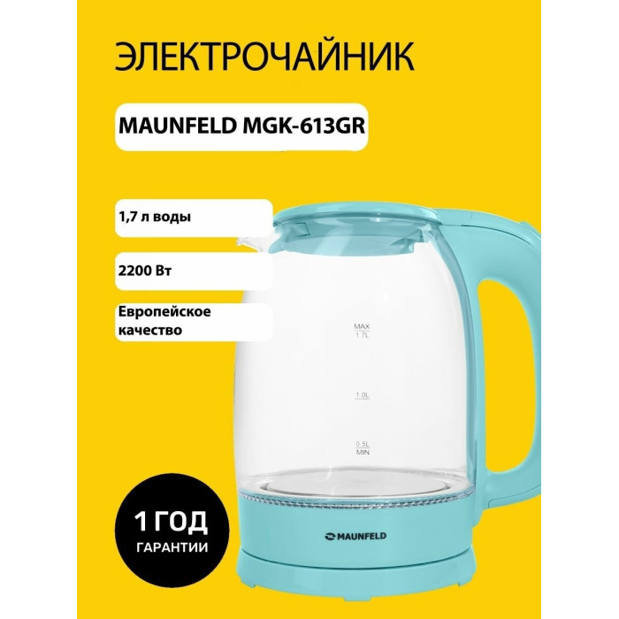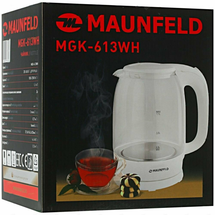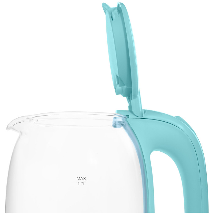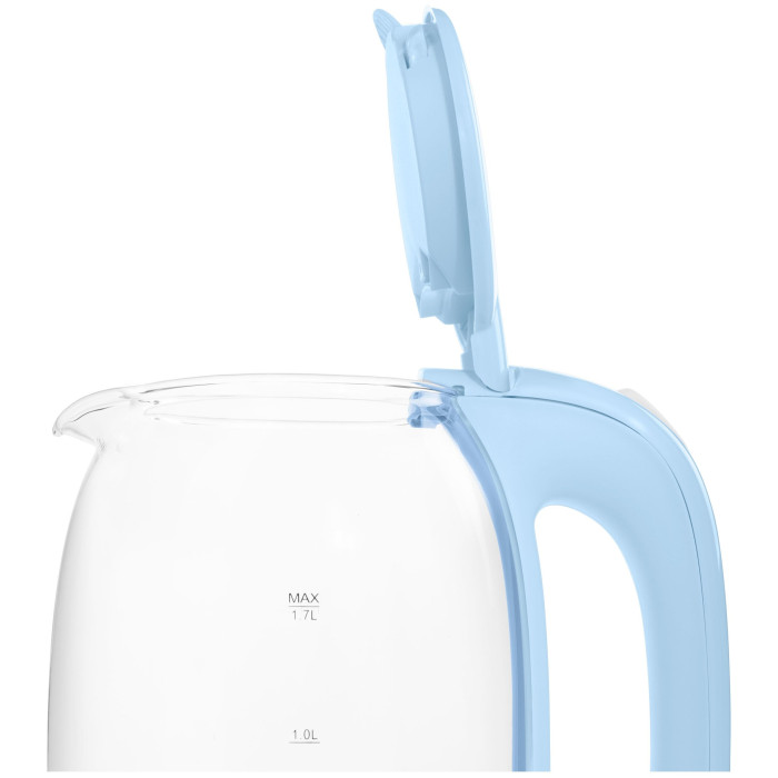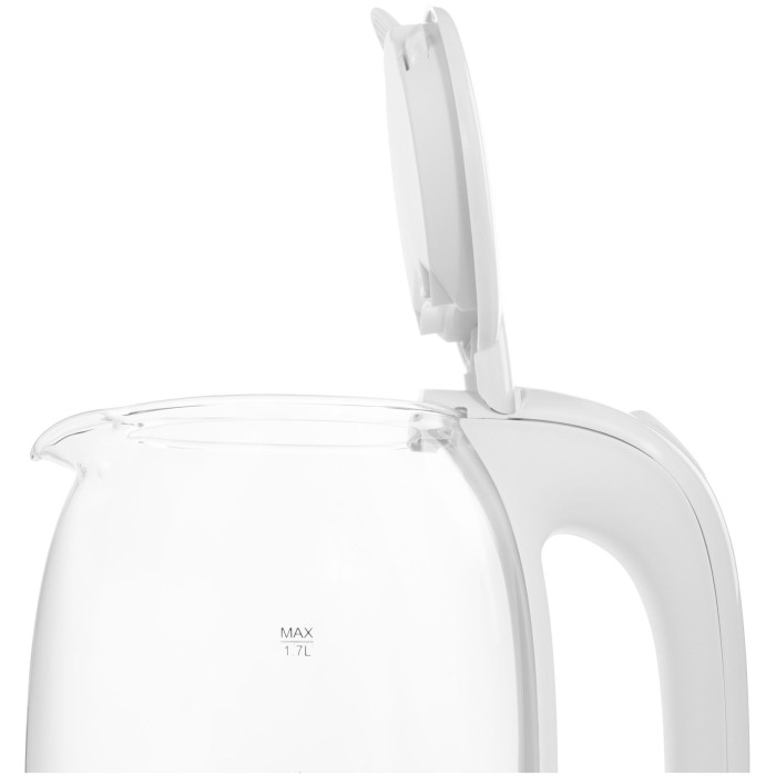 Элегантный чайник мощностью 2 200 Вт и объемом 1,7 литра позволит вскипятить воду для большой семьи или компании.