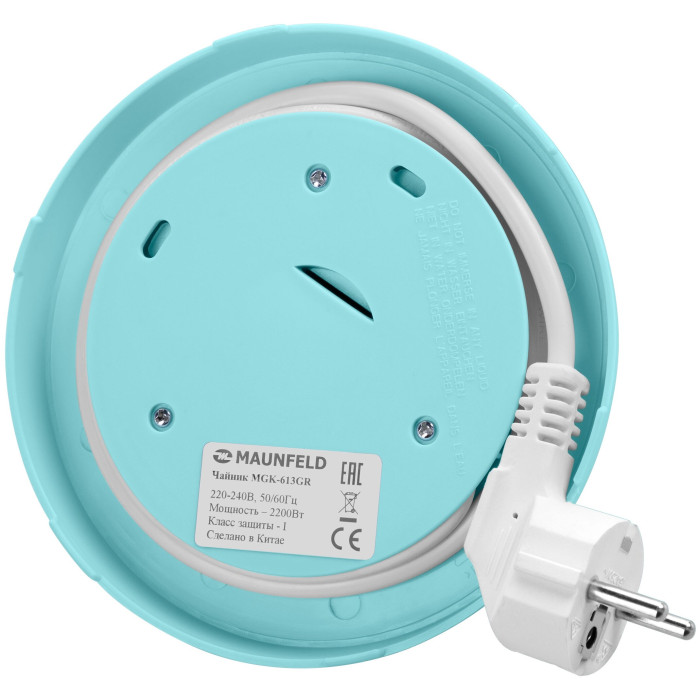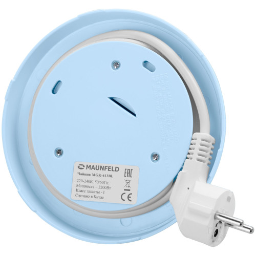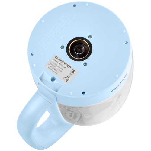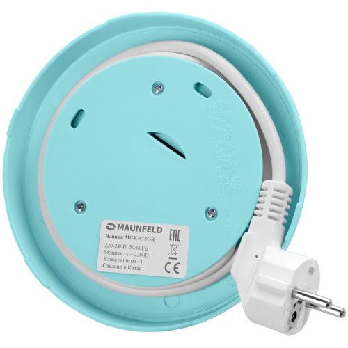 вращение на 360 градусов, индикатор уровня воды, индикация включения, отсек для хранения шнура, фильтр, открывание крышки осуществляется кнопкой, расположенной в верхней части крышки