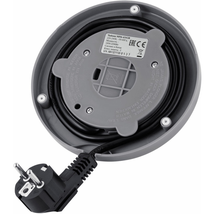 вращение на 360 градусов, двойные стенки, индикатор уровня воды, индикация включения, отсек для хранения шнура, фильтр