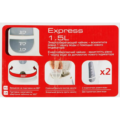 вращение на 360 градусов, индикатор уровня воды, индикация включения, фильтр