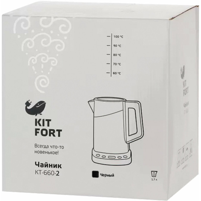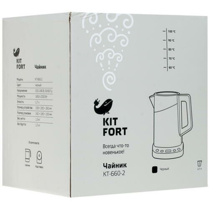 комплектация: чайник 1 шт, подставка 1 шт, руководство по эксплуатации 1 шт, гарантийный талон 1 шт; защита от перегрева; световая и звуковая индикация