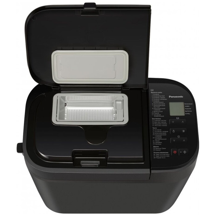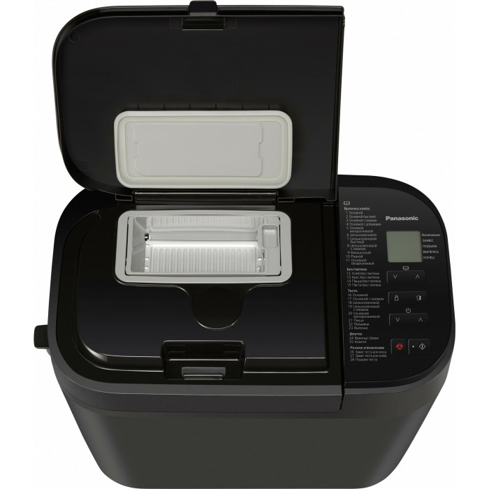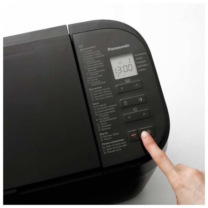 пользовательский режим, 13-часовой таймер, 2 температурных датчика, 4 программы приготовления без глютена, Диспенсер для добавок, Дисплей, Инверторная система, Программирование рецептов, Регулировка времени приготовления, Регулировка температуры, Часы, замес теста