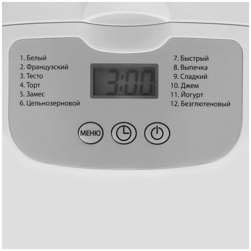 12, Безглютеновый хлеб, Бисквит, Быстрый хлеб, Выпечка, Дрожжевое тесто, Итальянский хлеб, Классический хлеб, Молочный хлеб, Мультизерновой хлеб, Мягкий хлеб, Отложенный старт, Поддержание тепла, Сдоба, Сладкий хлеб, Французский хлеб, Хлеб для сэндвичей, Цельнозерновой хлеб