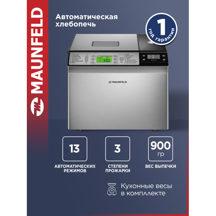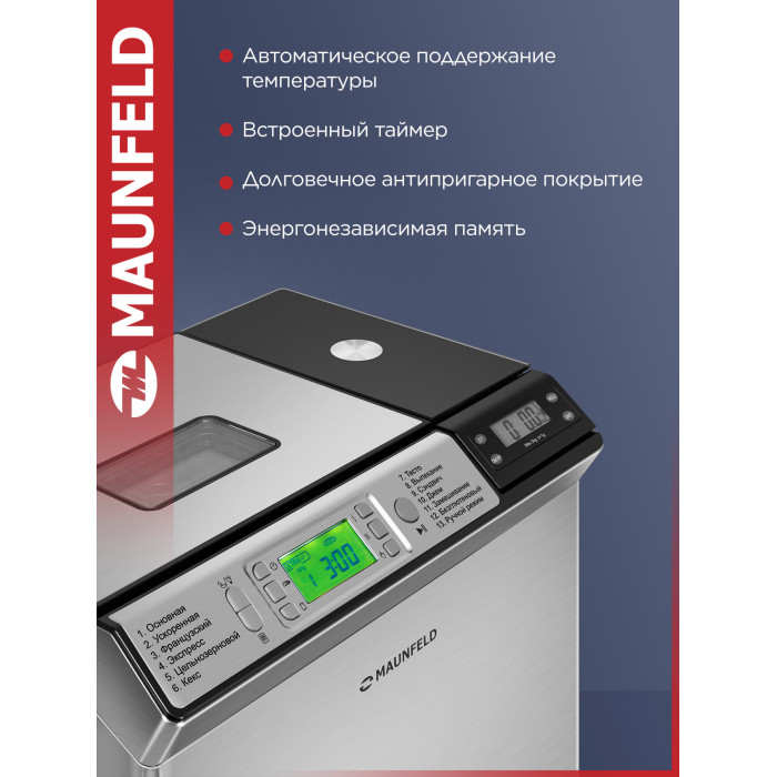 выбор цвета корочки, диспенсер, поддержание температуры, регулировка веса выпечки, таймер, ускоренная выпечка