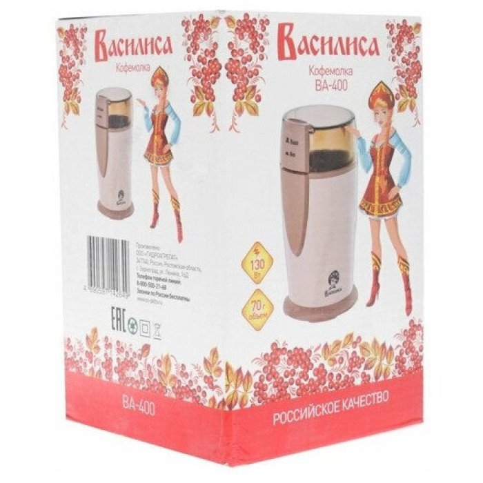 Кофемолка электрическая Василиса ВА-400 представлена в элегантном черно-красном дизайне. В основе используется острый ротационный нож из нержавеющей стали. Оборудование действует с мощностью 130 Вт, достаточной для качественного помола.