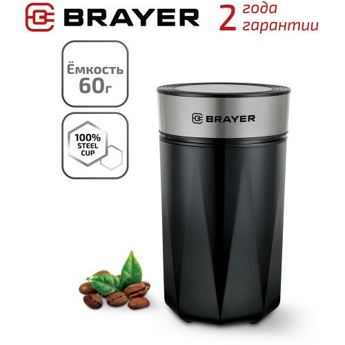 Кофемолка BRAYER BR1186 150Вт чаша на 60г черный