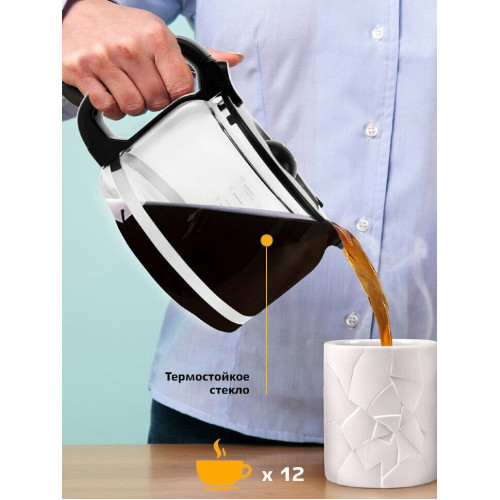 в комплекте мерная ложка; по окончании приготовления кофемашина перейдёт в режим подогрева; подогревная платформа будет горячей в течение 35 минут, затем кофемашина выключится; длина шнура 0,81 м