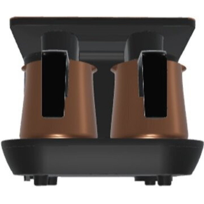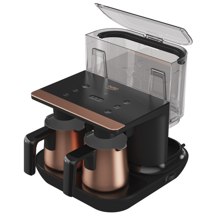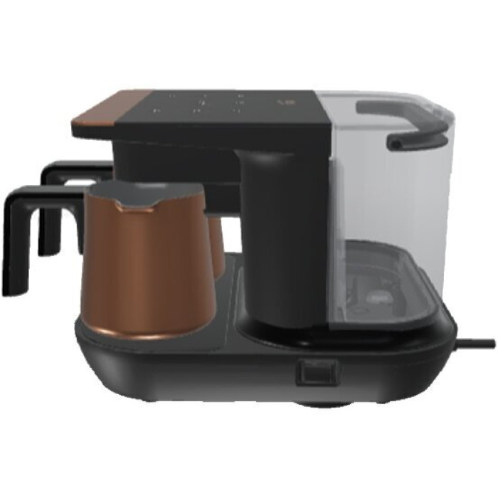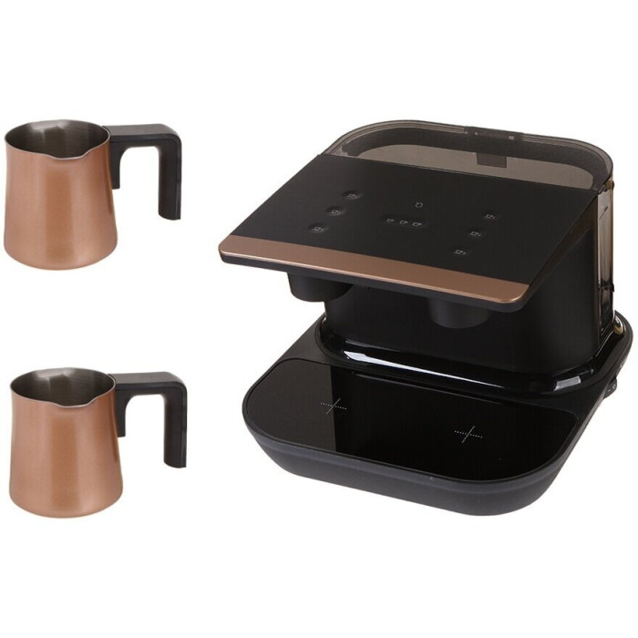 выбор размера чашки, выбор количества чашек, съемный резервуар для воды, мерная ложечка, автоматическая подача воды, количество турок - 2 шт., расчет на количество чашек: до 6 чашек