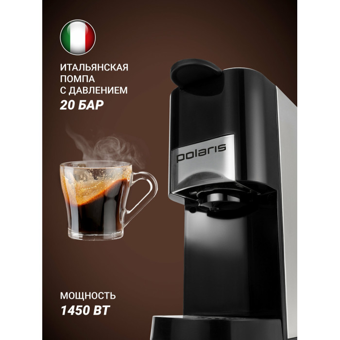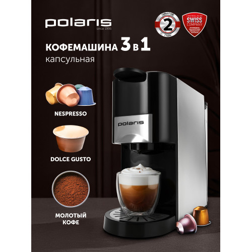 Комплектация: Кофеварка, мерная ложка, сменные насадки для капсул Nespresso и Dolce Gusto и насадка с фильтром для молотого кофе, ручной насос, шпилька для очистки, инструкция, гарантийный талон