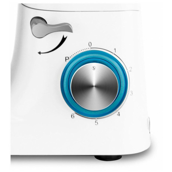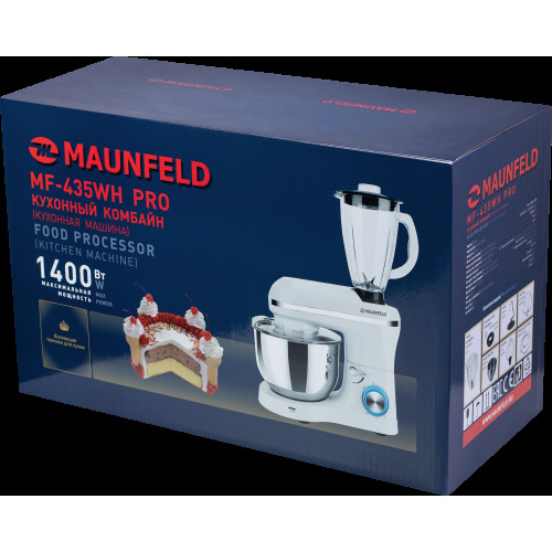 Кухонный комбайн Maunfeld MF-435WH PRO выполнен в белом цвете. Прибор может выполнять функции планетарного миксера и блендера. Управление осуществляется при помощи поворотного переключателя. В комплект входит набор насадок — крюк для теста, венчик для взбивания, насадка для перемешивания, а также крышка на чашу.