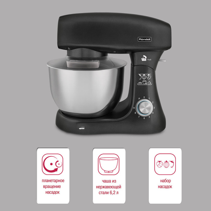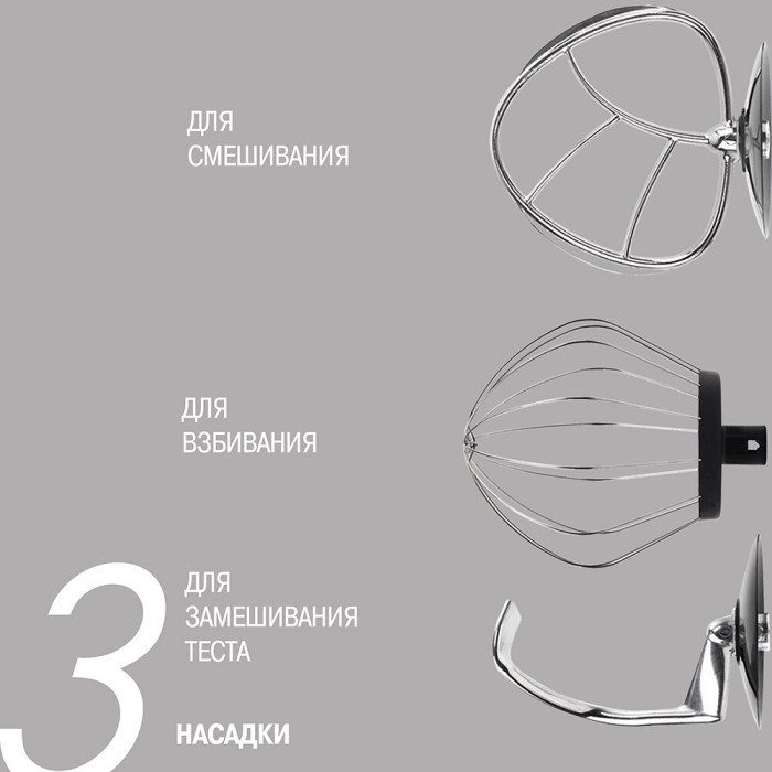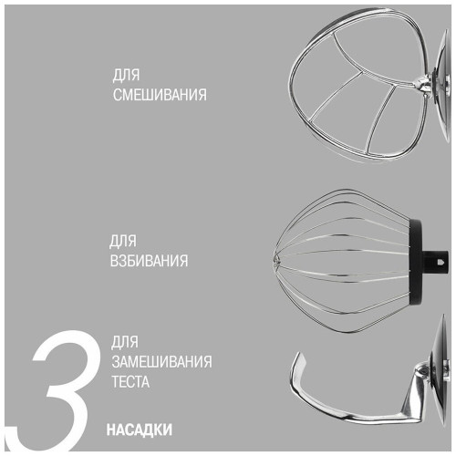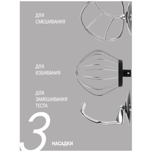 венчик для взбивания, крючки для замешивания теста, насадка для приготовления пюре