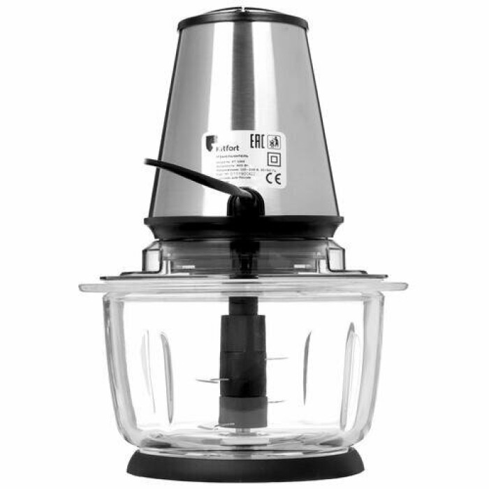 - моторный блок — 1 шт.; - пластиковая крышка чаши с силиконовой прокладкой — 1 шт.; - блок ножей — 1 шт.; - защитный кожух — 4 шт.; - чаша — 1 шт.; - резиновая подкладка под чашу — 1 шт.