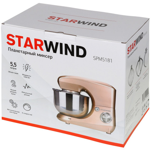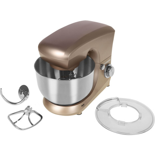 миксер – 1 шт., чаша – 1 шт., щиток пластиковый – 1 шт., лопатка для перемешивания – 1 шт. крюк для замешивания теста – 1шт., венчик для взбивания – 1шт., гарантийный талон – 1 шт., руководство пользователя – 1 шт