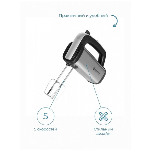 Стильный и мощный ручной миксер GL-570 из нержавеющей стали от бренда Gelberk станет идеальным помощником на Вашей кухне. С помощью миксера Gelberk Вы сможете легко и быстро замесить тесто или приготовить воздушный мусс. В набор входит 2 хромированные насадки для теста и яиц. Мощность миксера 350 Вт. Миксер обладает 5 скоростями, Вы сможете подобрать идеальный режим для приготовления блюда. Длина шнура 96 см, поэтому даже если у розетка расположена не слишком близко к рабочей зоне, Вам будет удобно использовать миксер. Габариты: 15,5 х 8,8 х 20 см. Предмет достаточно компактный для хранения на кухне.