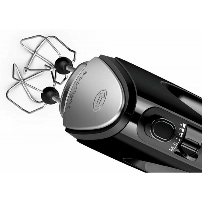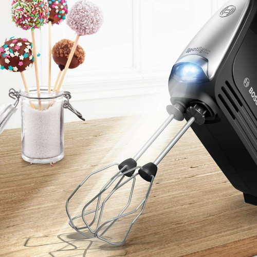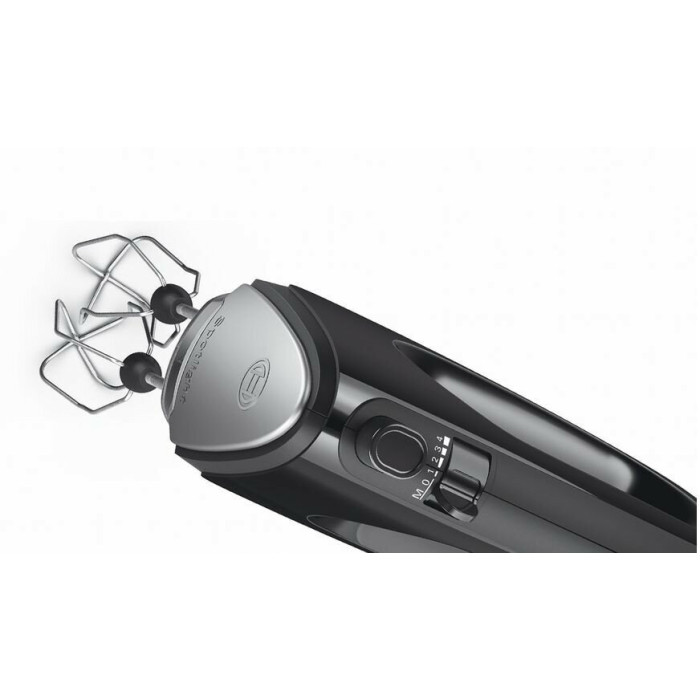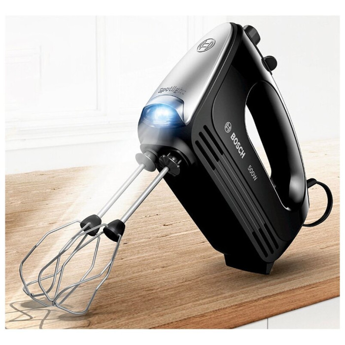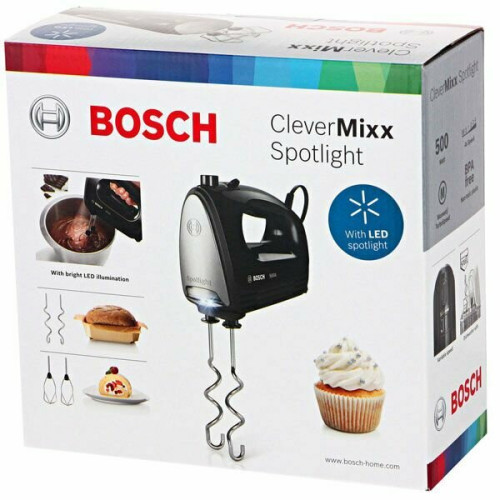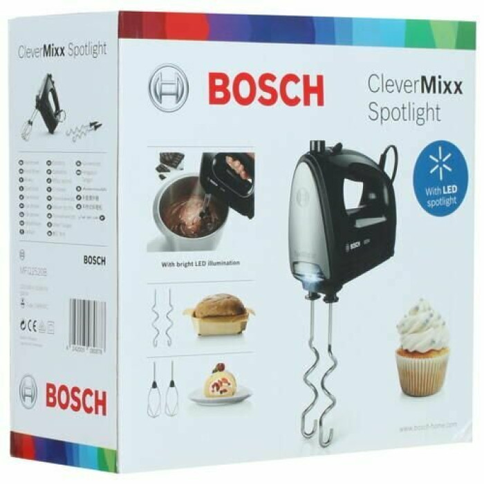 2 LED лампочки для подсветки ингредиентов Производительный ручной миксер в прочном пластиковом корпусе с LED-подсветкой обрабатываемых продуктов. Позиционируется как продукт средней ценовой категории 2019 года, ориентированный на бытовое использование. Обеспечивает эффективное взбивание и смешивание сухих и жидких продуктов, может применяться для быстрого приготовления небольших количеств теста. Оснащен надежным электродвигателем мощностью 500 Вт, внушительного крутящего момента которого вполне достаточно для энергичной обработки вязких смесей. Ручной миксер Bosch MFQ 2520B комплектуется двумя типами насадок: обычными венчиками с плоскими гранями и крюками. Венчики применяются для эффективного взбивания сливок, белков, муссов и омлетов. Также могут быть полезны в процессе приготовления жидкого теста для блинов, кексов, оладий или вафель. Крюки помогут значительно ускорить замешивание плотного теста для макаронных изделий, вареников, хинкали, мант, печенья и др. С их помощью можно быстро перемешать мясной фарш для фрикаделек с рисом, овощами, яйцом и пр. Предусмотрено 4-ступенчатое регулирование скорости вращения инструмента, поддерживается турборежим, использование которого может придать пышность взбитой смеси и эффективно разобьет комочки в тесте. Для предотвращения перегрева обмоток двигателя при длительной работе с высокой нагрузкой имеется специальная защитная система. Основные характеристики Цвет: черный Тип устройства: ручной миксер Мощность: 500 Вт Кол-во скоростей: 4 Импульсный режим: есть Насадки: венчики для взбивания, крюки для замеса Источник питания: сеть
