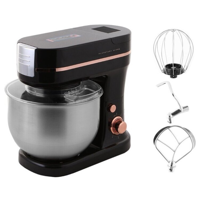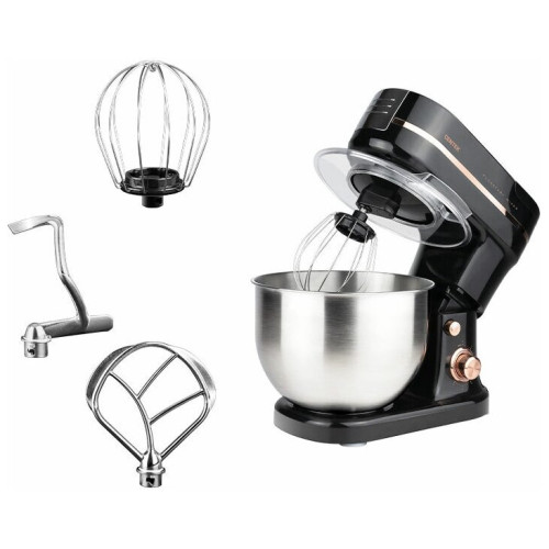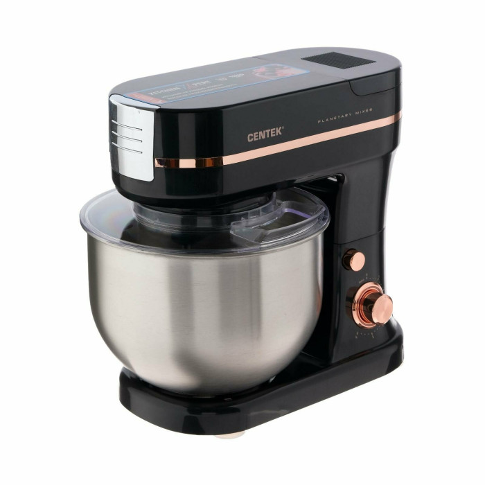 Планетарный миксер Centek CT-1130 - стильное и современное решение на вашей кухне. Прибор выполняет функции миксера, блендера и тестомеса. Чаша из нержавеющей стали объемом 5 л имеет защитную крышку с отверстием для добавления ингредиентов. Насадка в виде крюка предназначена для замешивания теста для всех видов домашней выпечки и смешивания сухих ингредиентов. Насадки лопатка и венчик применяются для приготовления соусов, взбивания сливок, жидкого теста, кремов.