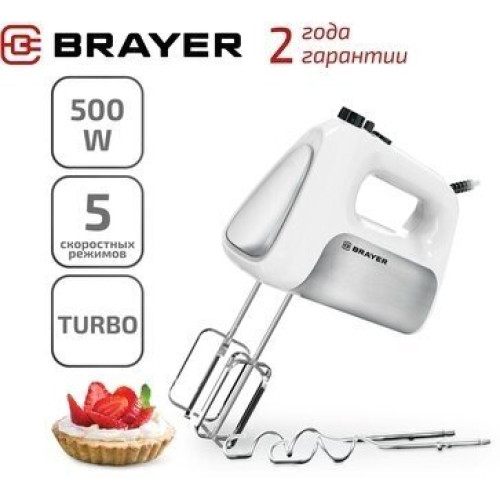 Миксер BRAYER BR1303 500Вт 5 скоростей белый