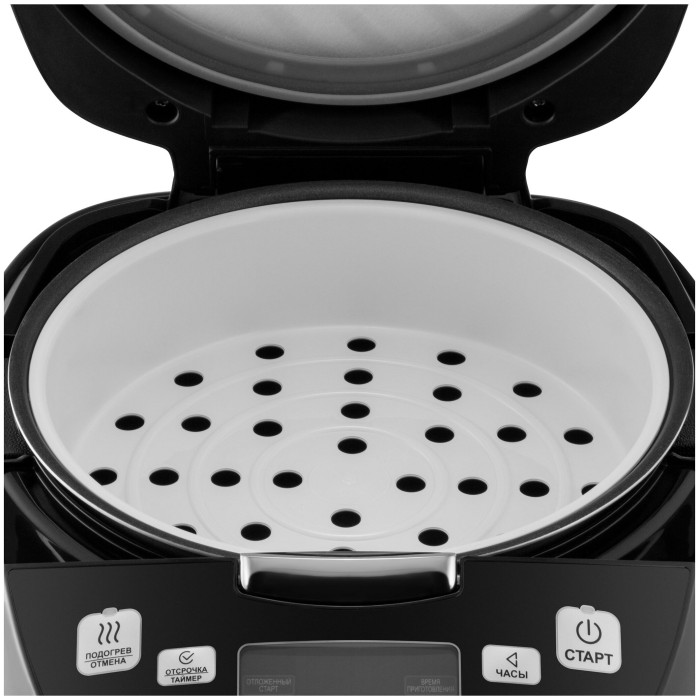 Особенности: Мультиварка с мощностью 860 Вт приготовит блюдо с оптимальной скоростью В мультиварке реализовано 12 программ. Эта компактная мультиварка с легкостью готовит как классические первые блюда и вторые блюда: супы, рагу, плов, гарниры, так и оригинальные десерты, салаты и многое другое. Функция отложенного старта позволяет установить время, по истечении которого начнется выполнение программы приготовления. О завершении программы приготовления оповестит звуковой сигнал. Функция подогрева включается автоматически по завершению программы приготовления и поддерживает температуру готового блюда в пределах 70-75°С. Экспресс - предназначена для приготовления риса, гречки и других рассыпчатых каш. На этой программе прибор автоматически прекращает работу после полного выкипания жидкости в чаше. Жарка - предназначена для жарки мяса, овощей, птицы и морепродуктов, приготовления заправок для супов, некоторых гарниров. Паста - предназначена для выпечки домашней пиццы с разнообразными начинками на тонком или пышном тесте. Молочная каша - предназначена для варки молочных каш из риса, овсяной, кукурузной и других видов круп. На пару- предназначена для приготовления диетических паровых блюд и легких овощных гарниров, детского питания. Также программа подойдет для варки мантов и других сходных блюд. Рис/крупы - для варки рассыпчатых каш из различных круп, приготовления крупяных гарниров. Суп - предназначена для приготовления заправочных супов (щей, борща, рассольника), крем-супов, вегетарианских супов, бульонов, а также некоторых отваров и напитков. Тушение - предназначена для тушения мяса, рыбы, овощей, приготовления заливного, холодцов, хаша и других блюд, требующих длительной температурной обработки. Томление/приготовление детской еды - для приготовления разнообразных томленых блюд: классических русских щей, немецкой рульки, домашней тушенки, холодца Выпечка - предназначена для приготовления бисквитов, пирогов с разнообразными начинками, кексов, запеканок, омлетов, запеченных в фольге основных блюд. Йогурт- программа для приготовления натурального йогурта из молока и йогуртовой закваски. Разогрев - режим подходит для разогрева остывших или охлажденных блюд. Благодаря новейшим разработкам, продукты в процессе приготовления сохраняют питательные вещества и витамины Легкий уход за чашей с мягким моющим средством Предусмотренный в конструкции влагосборник, будет собирать конденсат, защищая блюдо от стекающих капель Прорезиненные ножки позволяют мультиварке крепко стоять и не скользить на столешнице Чаша с антипригарным покрытием -это устойчивость к воздействию высоких температур, прочность, инертность к содержащимся в продуктах естественным кислотам.