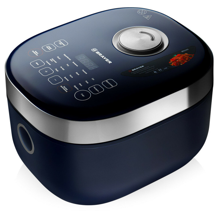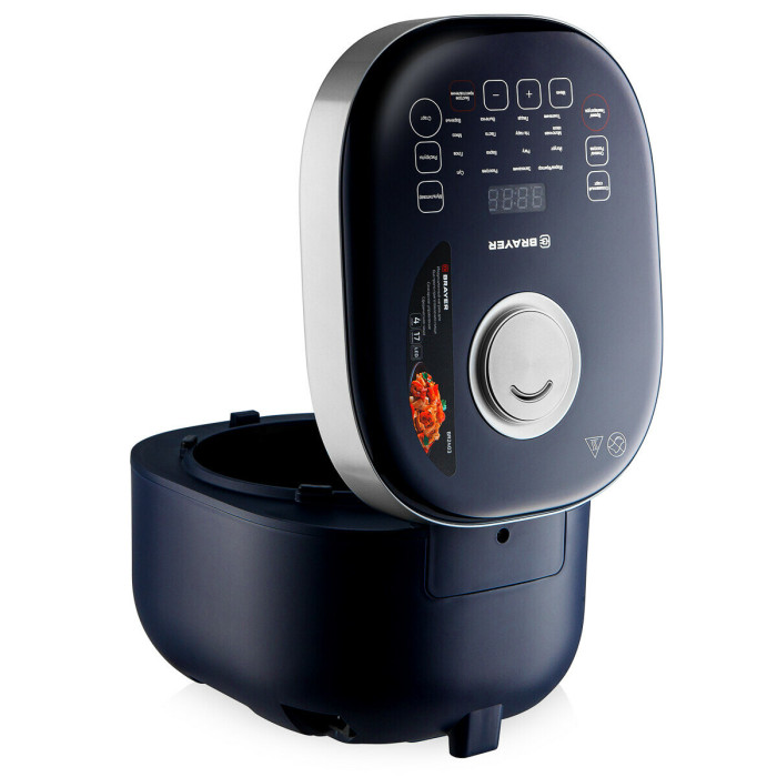 Мощность 1250 Вт Объем чаши 4 л Индукционный нагрев Антипригарное покрытие чаши Daikin Сферическая многослойная чаша изготовлена из нержавеющей стали и алюминия 17 автоматических программ приготовления: жарка/фритюр, запекание, разогрев, суп, йогурт, рагу, варка, плов, молочная каша, на пару, паста, мясо, томление, пицца, выпечка, варенье, мультиповар. Сенсорное управление Многофункциональный LED-дисплей Съемная крышка и клапан выпуска пара Корпус из высококачественного пластика Таймер 24 часа, позволяющий приготовить блюда к назначенному сроку Поддержание температуры 12 часов Звуковой сигнал по окончании работы Вставка для приготовления на пару, мерный стакан, ложка в комплекте Чашу и аксессуары можно мыть в посудомоечной машине