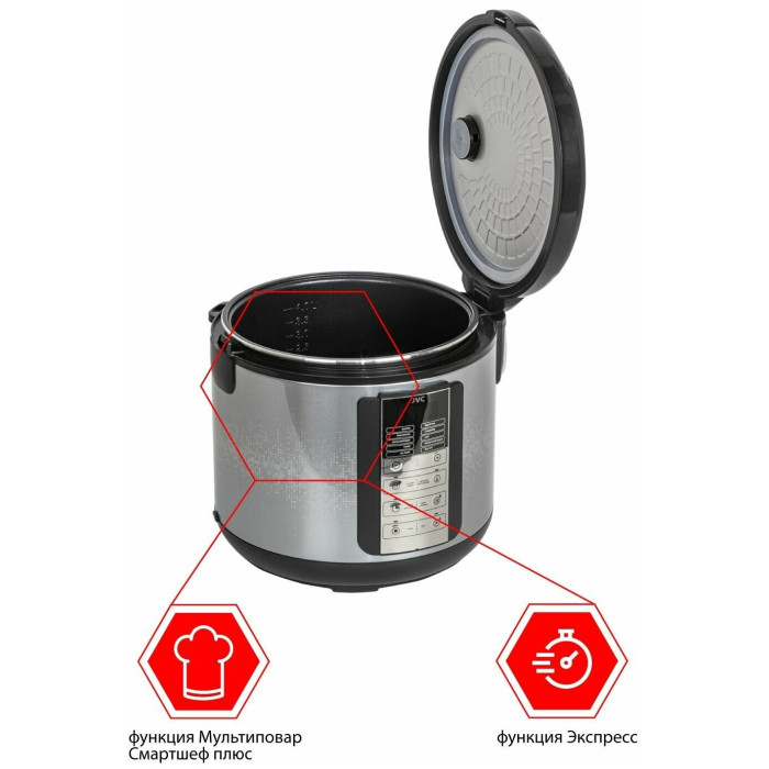 выпечка, жарка, йогурт, крупа, молочная каша, мультиповар, плов, приготовление на пару, суп, тушение, Отложенный старт, Поддержание тепла, Стерилизация